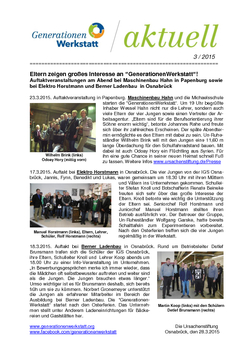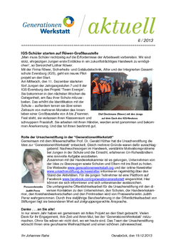 "GenerationenWerkstatt" im 1. Jahrbuch der Ratsschule Melle