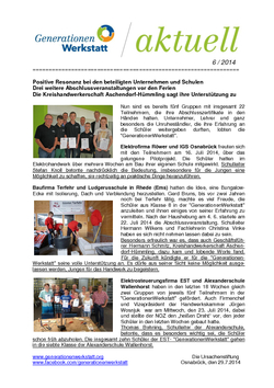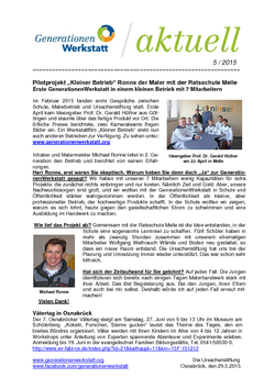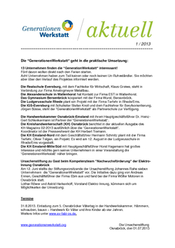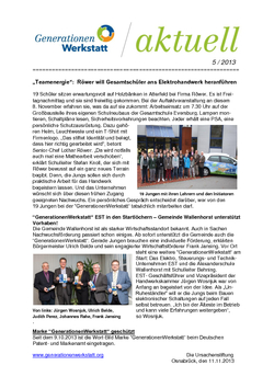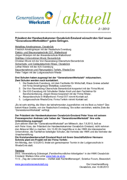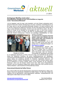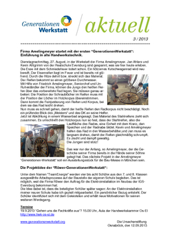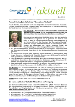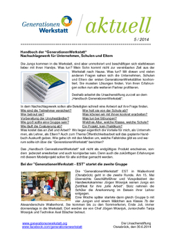 Die "GenerationenWerkstatt" hat die ersten Werkstattberichte gefilmt. Praktische Beispiele aus unterschiedlichen Unternehmen mit Aussagen von Lehrern, Schülern, Unternehmern, Un-Ruheständlern und Repräsentanten der Handwerksorganisationen stehen online bereit unter:
