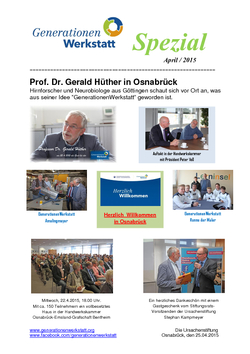 kommt der Ideen-Geber der "GenerationenWerkstatt" Prof. Dr. Gerald Hüther nach Osnabrück, um sich einige Werkstätten in der Praxis anzusehen.
