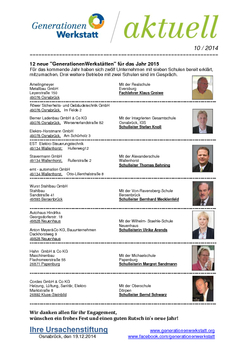 ten im Jahre 2014 eine erfreuliche Bilanz, die vor allen Dingen unserer kommenden Generation zu Gute kommt. Das Team der Ursachenstiftung möchte sich bei den Unternehmen, Lehrern und Eltern bedanken.