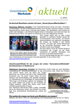 Vierte "GenerationenWerkstatt" in den Startlöchern: