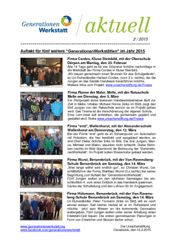 Vierzehn “GenerationenWerkstätten“ im ersten Halbjahr 2015 sind nach den fünf Pilotprojek-