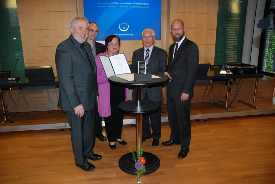 - (v.l.): Jürgen Wosnjuk (Vizepräsident der Handwerkskammer Osnabrück), Peter Klösener (Bildungsreferent, Katholische LandvolkHochschule Oesede), Monika Bögelmann (Vorsitzende, Familienbund der Katholiken im Bistum Osnabrück), Johannes Rahe (Vorstand Ursachenstiftung) und Frank Hesse (Geschäftsführer der IHK Osnabrück-Emsland-Grafschaft Bentheim).