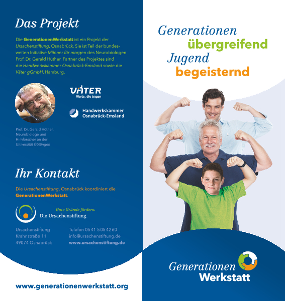 Die GenerationenWerkstatt ist ein Projekt der Ursachenstiftung Osnabrück. Sie ist Teil der bundesweiten Initiative Männer für morgen des Neurobiologen Prof. Dr. Gerald Hüther.